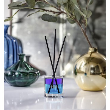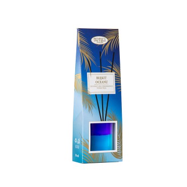 Dekoracyjny odświeżacz powietrza Błękit Oceanu Pachnąca Szafa sprawi, że zapragniesz zanurzyć się w błękitnym oceanu wspominając wakacyjne eskapady. Esencja zapachowa jest zamknięta w eleganckim flakoniku, a dzięki fibrynowym patyczkom będzie się powoli uwalniać przez wiele tygodni.