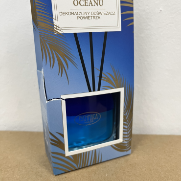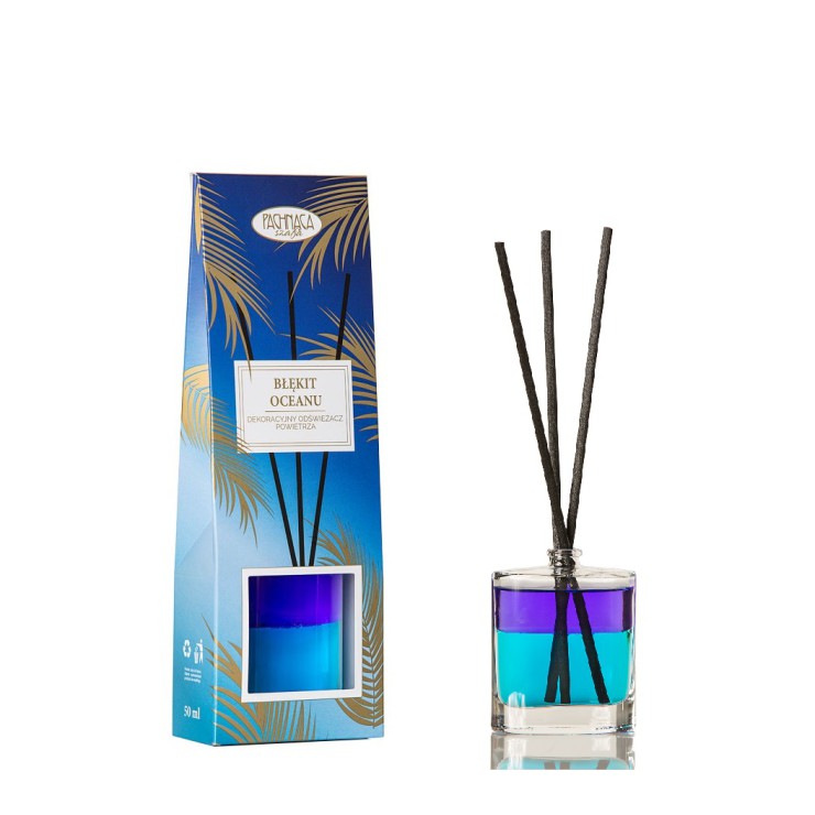 Dekoracyjny odświeżacz powietrza Błękit Oceanu Pachnąca Szafa sprawi, że zapragniesz zanurzyć się w błękitnym oceanu wspominając wakacyjne eskapady. Esencja zapachowa jest zamknięta w eleganckim flakoniku, a dzięki fibrynowym patyczkom będzie się powoli uwalniać przez wiele tygodni. Postaw go w łazience, sypialni, gabinecie czy biurze i ciesz się jego wyjątkowym wyglądem i intensywnym zapachem.
