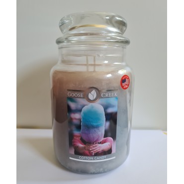 Duża świeca Cotton Candy Goose Creek Candle. Nostalgicznych aromat jarmarcznych słodyczy wypełnia powietrze. Świeżo kręcona wata cukrowa to przepyszna podróż do czasów dzieciństwa.
