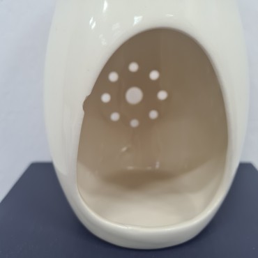 Kominek jest wykonany z ceramiki, jest naprawdę solidny i wytrzymały. Nie ma tendencji do pękania czy odbarwiania pod wpływem temperatury. Wgłębienie ma odpowiednie gabaryty, aby zmieścić wosk czy też granulki zapachowe. Powierzchnia jest gładka, dzięki czemu łatwo i przyjemnie się go czyści.