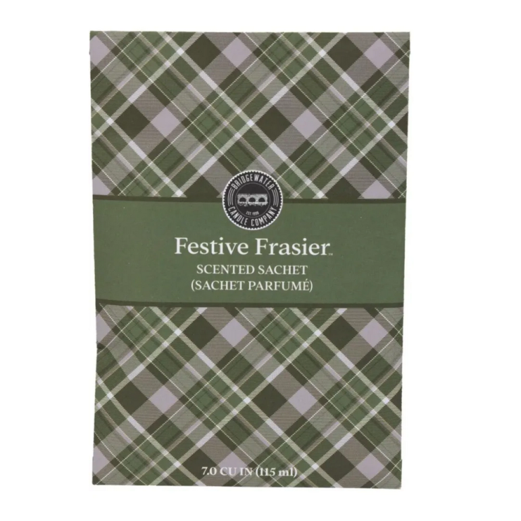 Saszetka zapachowa Festive Frasier Bridgewater Candle. Idealnie pasuje na okres świąteczny. Festive Frasier jest rześki, zachwycający i jakże świeży. Z nutami igieł jodłowych, drzewa cedrowego i piżma, ten zapach jest przepełniony nostalgią i przepełniony tradycją. Saszetka ma wiele nie wymagających zastosowań. Sprawdzi się w garderobie, aby odzież i pościel pięknie pachniała, do stosowania w torebce, samochodzie i wszędzie tam, gdzie wskazany jest piękny zapach.