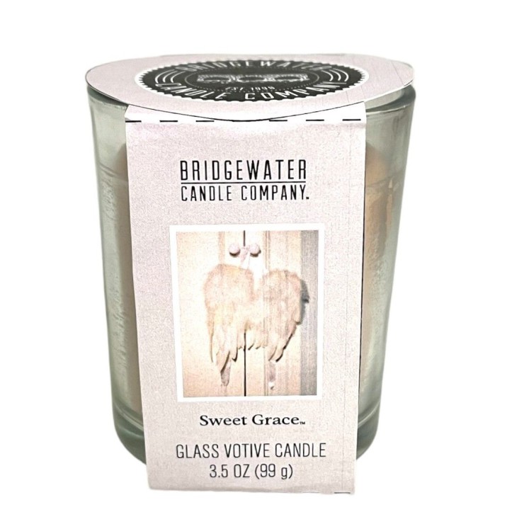 Świeca zapachowa Votive Sweet Grace 56 g Bridgewater Candle. Iluminacja daru życia i piękna pasji promieniujących owoców zanurzonych w orzeźwiającej herbacie oraz klasycznej patchouli. Świece typu Votive można stosować tylko w przeznaczonych do tego szklanych świecznikach.