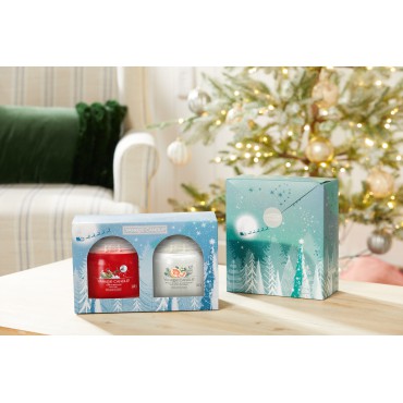 Zestaw 2 średnie świece Snow Globe Wonderland Yankee Candle. Poczuj magiczną atmosferę zimowej krainy dzięki zestawom prezentowym z kolekcji Snow Globe Wonderland. Staranne wykonanie, specjalnie dobrane kolory i śnieżne detale sprawią, że będzie to idealny gwiazdkowy prezent.