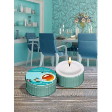 Daylight świeczka Herbal Tea Kringle Candle. Zrelaksuj zmysły aromatycznymi nutami świeżo parzonych liści ziołowej herbatki w połączeniu z orzeźwiającą nutą witalnej cytryny.