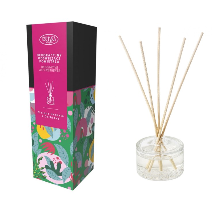 Dekoracyjny odświeżacz powietrza to szklana buteleczka wypełniona esencjonalnym zapachem. Za pomocą ratanowych patyczków umieszczonych w szklanym naczyniu, wypełni dane pomieszczenie świeżym zapachem herbacianych listków. Dzięki swojej prostej i eleganckiej formie, dyfuzor jest ozdobą zarówno tradycyjnych, jak i nowoczesnych wnętrz. Doskonale sprawdza się nie tylko w domu, ale także biurze, kawiarni, sklepie, czy salonie piękności.