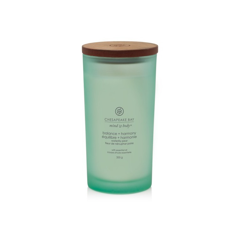Duża świeca Balance & Harmony (Waterlily Pear) Chesapeake Bay Candle. Harmonijny, owocowy zapach - nuty słodkiej gruszki połączone z aromatem lilii wodnej i egzotycznych kwiatów lasu deszczowego.