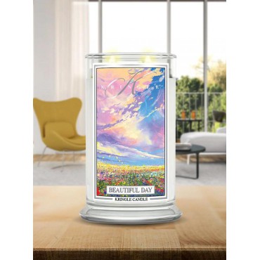 Duża świeca Beautiful Day Kringle Candle. Obudź się w cieple złotego bursztynu, gdy promienie słońca muskają Twoją skórę. Naładuj baterie nutą dojrzałej i energetyzującej guawy oraz skórki z cytryny. Z radością i energią rozpocznij poranek. Ten zapach to gwarancja pięknego dnia!