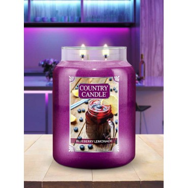 Duża świeca Blueberry Lemonade Country Candle. Idealny zapach na upalne, letnie dni. Zaczynamy od borówek zmieszanych z malinami i cytrynami; następnie dodaj jabłko i limonkę oraz odrobinę imbiru, wanilii i słodzonego piżma, aby uzyskać cierpką i orzeźwiającą Lemoniadę Jagodową!