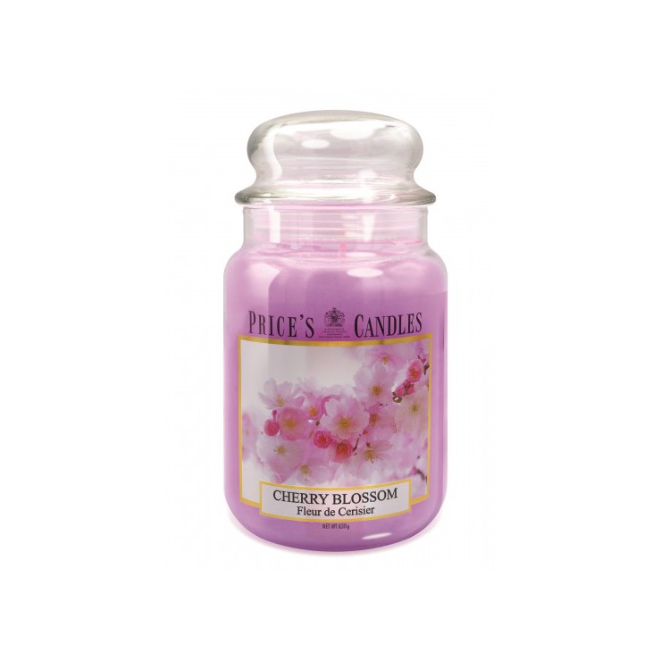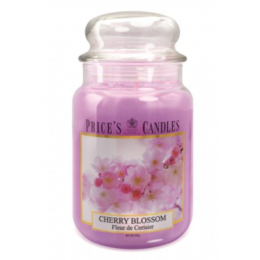 Duża świeca Cherry Blossom Price's Candles. Subtelny zapach japońskich kwiatów wiśni, kwiatowy i elegancki. Bladoróżowy kolor tej świecy doskonale oddaje wdzięk i delikatność jej zapachu.