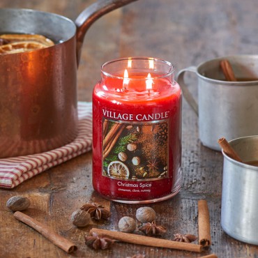 Duża świeca Christmas Spice Village Candle. Świąteczny nastrój unosi się w powietrzu z ciepłymi i zachęcającymi przyprawami. Wejdź do domu w zimowy dzień i rozkoszuj się pikantnymi nutami podczas spotkania z przyjaciółmi, aby stworzyć przyjazną atmosferę i piękny blask.