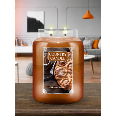 Duża świeca Cinnamon Buns Country Candle. Cynamonowe bułeczki to idealny, słodki przysmak na śniadanie lub na popołudniową przekąskę. Ciasteczkowe Cinnamon Buns to przytulny zapach cynamonu i gałki muszkatołowej z dodatkiem śmietanki, mascarpone, miodu, orzechów włoskich i wanilii.