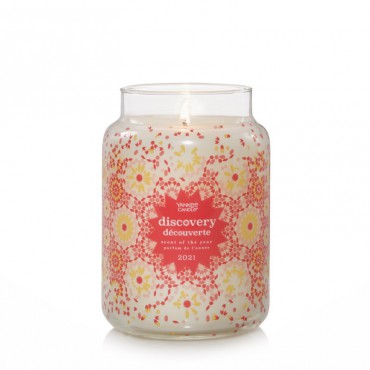 Duża świeca Discovery Yankee Candle Zapach Roku 2021. Egzotyczna mieszanka owoców i ciepłych przypraw, której sercem jest rozgrzewający imbir to Discovery – Zapach Roku 2021. Imbir w połączeniu z cierpkością karamboli, słodkością dojrzałego mango i ciepłem wanilii tworzy idealną kompozycję.