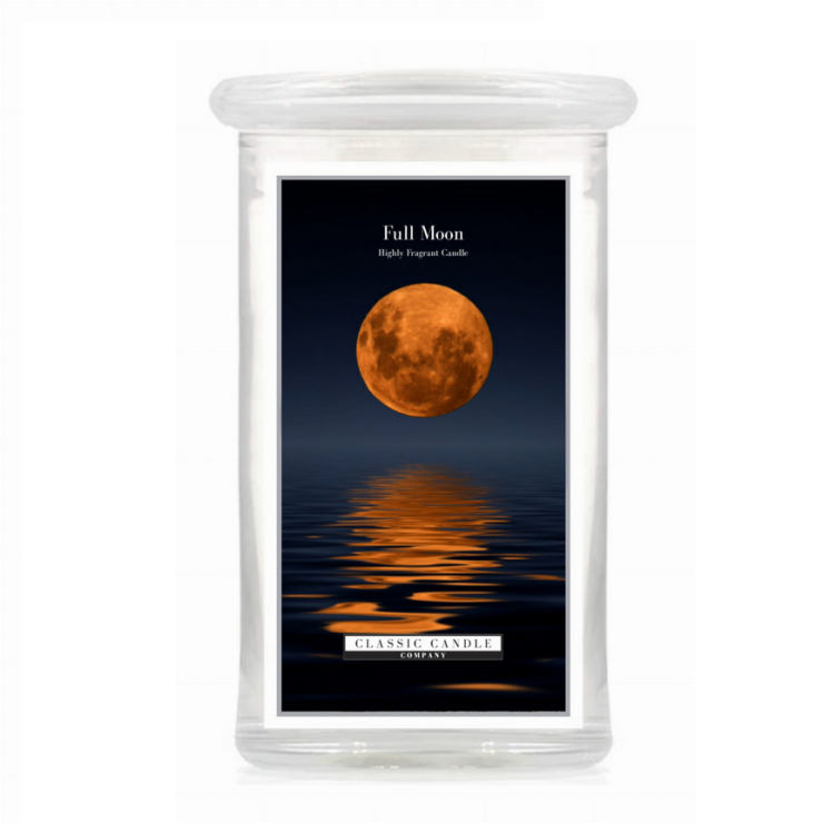 Duża świeca Full Moon Classic Candle. Głęboki i esencjonalny zapach którego bazą są jagody i drewno sandałowe... dopełnieniem tej esencji są kwiaty wanilii i kwitnąca ciemna orchidea...