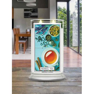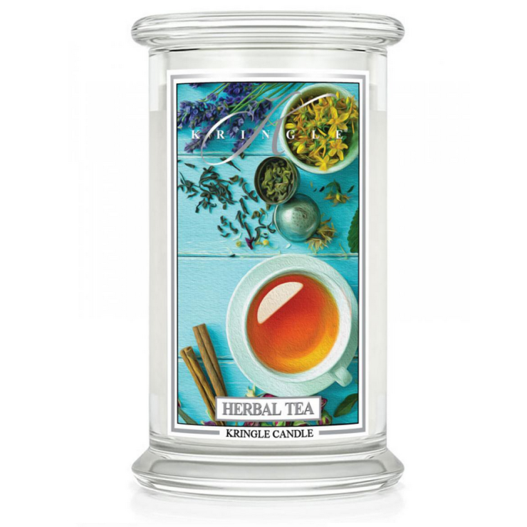 Duża świeca Herbal Tea Kringle Candle. Zrelaksuj zmysły aromatycznymi nutami świeżo parzonych liści ziołowej herbatki w połączeniu z orzeźwiającą nutą witalnej cytryny.