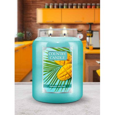 Duża świeca Mango Nectar Country Candle. Słodko - pikantne yuzu z gardenią, kremowym mlekiem kokosowym i wanilią dodaje smaku pysznej mieszance nektaru z mango, ananasa i moreli.