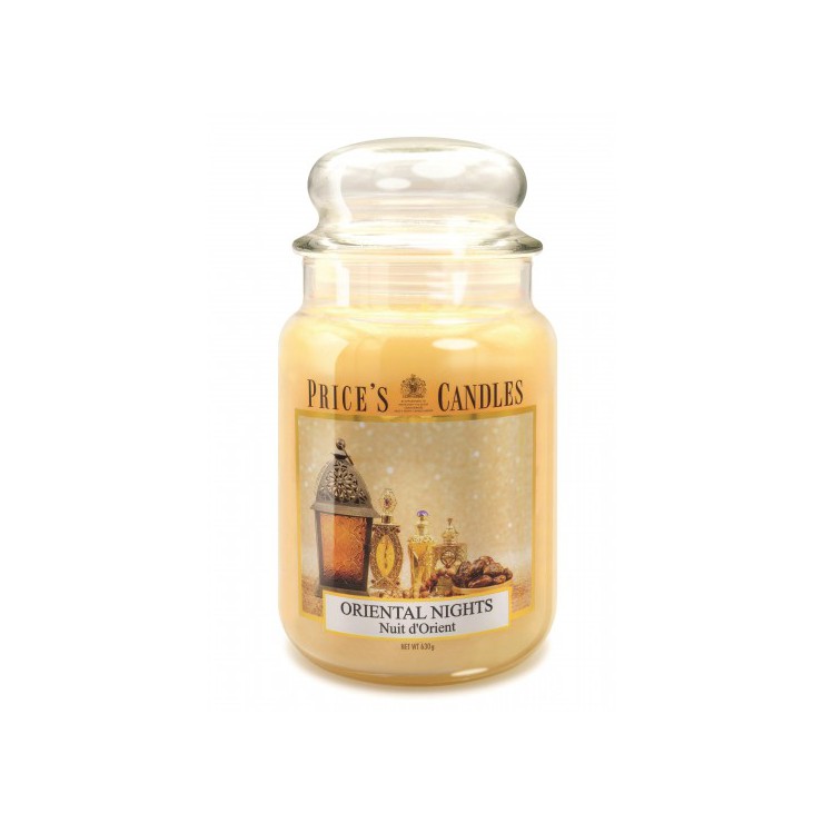 Duża świeca Oriental Nights Price's Candles. Wyraźny kwiatowy bukiet, a wszystko to otoczone cytrusowymi akordami. Natomiast serce tej unikatowej mieszanki stanowi głęboki aromat drzewa sandałowego podsycany piżmem. Ta orientalna mieszanka sprawia, że w oddali aż słychać szum marokańskiego miasta, a na całym ciele czuć ciepło tropikalnego słońca.