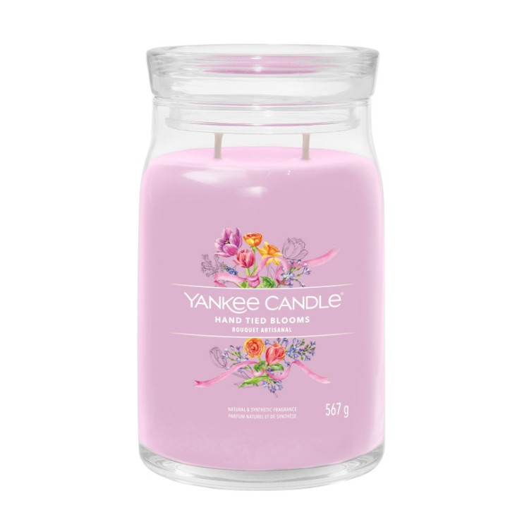 Duża świeca Signature Hand Tied Blooms Yankee Candle. Zapach kolorowych wiosennych kwiatów zebranych w uroczy, sielski bukiet.