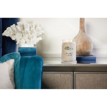 Duża świeca Signature Seaside Woods Yankee Candle. Unoszący się w powietrzu aromat drzewa cytrusowego, różowych kwiatów oraz pikantnej wanilii.