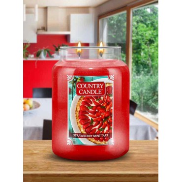 Duża świeca Strawberry Mint Tart Country Candle. Strawberry Mint Tart to kusząca tarta wypełniona świeżymi truskawkami, cytrusami i aksamitnie kremowym zapachem wanilii. Podczas gdy nuty owocowych truskawek zapewniają słodycz, delikatne niuanse cytryny doskonale orzeźwiają ten pyszny zapach. Bogaty aromat chrupiącej i puszystej skórki oraz słodkiej śmietanki zdecydowanie sprawia, że chcesz więcej. Nie musisz się obawiać, po naszą smakowitą tarte możesz sięgać bez najmniejszych wyrzutów sumienia.