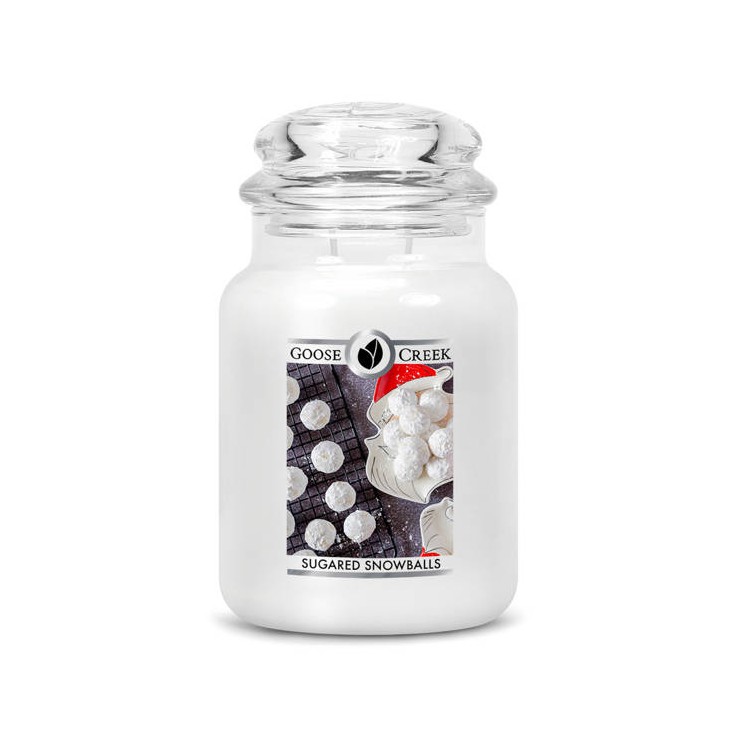 Duża świeca Sugared Snowballs Goose Creek Candle. Pyszny aromat domowego ciasta waniliowego obsypanego wiórkami kokosowymi.