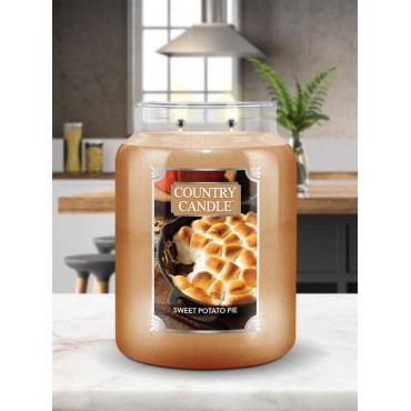 Duża świeca Sweet Potato Pie Country Candle. Sweet Potato Pie to uczta dla zmysłów. Puree ze słodkich ziemniaków, brązowy cukier oraz perfekcyjnie dobrane przyprawy korzenne podane z ciemnym rumem, wanilią i kandyzowanym klonem.