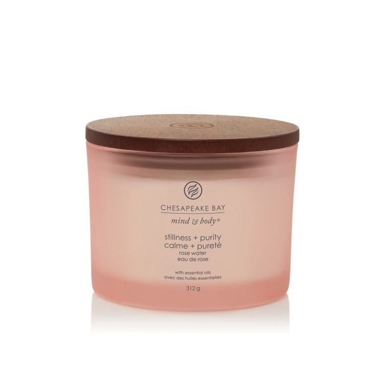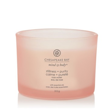 Duża świeca z 3 knotami Stillness & Purity (Rose Water) Chesapeake Bay Candle. Delikatny i świeży - kwitnący bukiet róż i piwonii dopełniony zapachem goździków, bursztynu i drzewa agarowego.