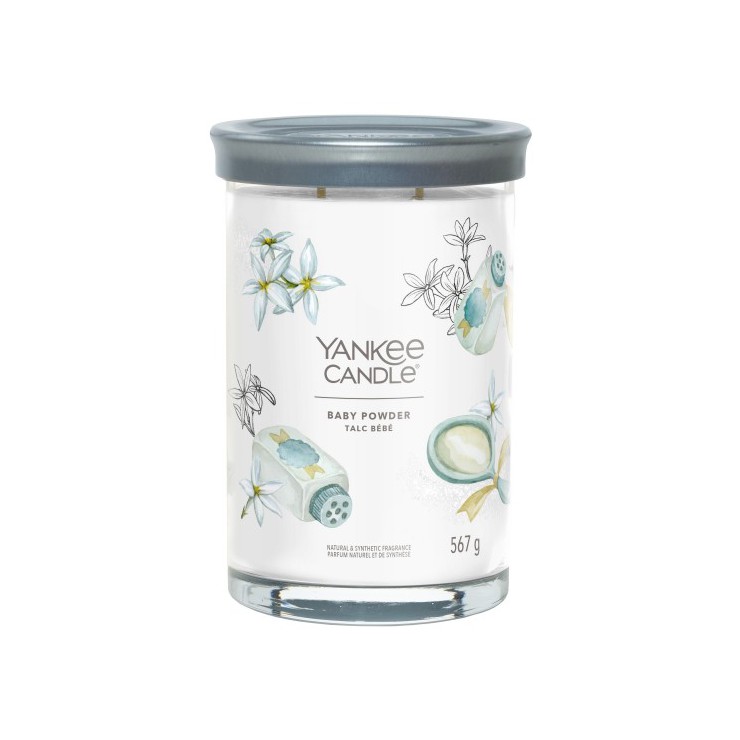 Duży tumbler Signature Baby Powder Yankee Candle. Kojący, świeży zapach dziecięcego pudru.