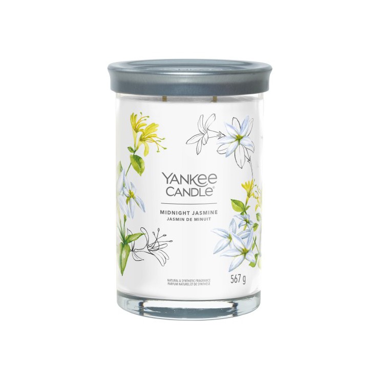 Duży tumbler Signature Midnight Jasmine Yankee Candle. Uwodzicielski zapach perfum z nutą jaśminu, słodkiej wody z wiciokrzewu i kwiatu mandarynki.