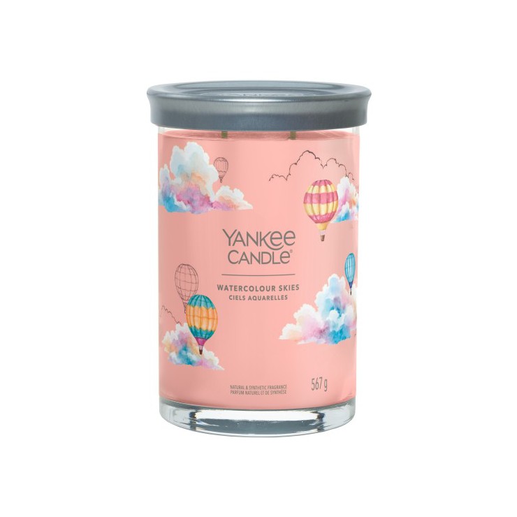 Duży tumbler Signature Watercolour Skies Yankee Candle. Intrygująca mieszanka aromatu jaśminu, kaszmiru i piżma.