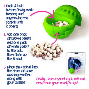 Ten rewolucyjny wynalazek wystarczy Ci na 1000 prań! Kule do prania Ecoballs są naturalną alternatywą dla tradycyjnych proszków do prania i są idealne dla osób z wrażliwą skórą. Ich naukowo opracowana formuła wnika głęboko w włókna, czyszcząc brud, a jednocześnie nie niszcząc kolorów i delikatnych tkanin. Wystarczy umieścić kule do prania w bębnie i włączyć pralkę - Ecoballs zmiękcza ubrania nawet w twardej wodzie, nie musisz więc dodawać płynu do płukania tkanin. Nie zawierają też mydła, możesz więc skrócić cykl płukania, oszczędzając wodę i energię.