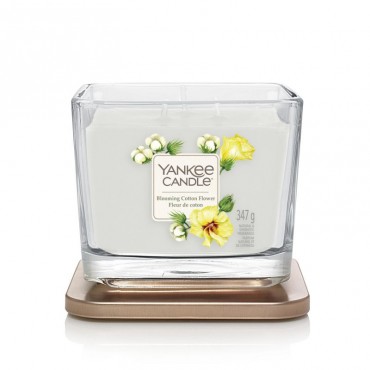 Elevation średnia Blooming Cotton Flower Yankee Candle. Delikatne drzewne nuty połączone z zapachem rozkwitających w słońcu kwiatów bawełny.