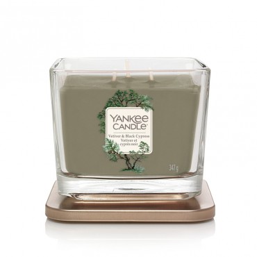 Elevation średnia świeca Vetiver & Black Cypress Yankee Candle. Wejdź do chłodnego, zacienionego lasu, w którym trawiaste aromaty wetywerii i drzewa elemi przeplatają się z nutami egzotycznych przypraw i ciepłego bursztynu.