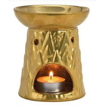 Kominek do wosków Złoty. Kominek ceramiczny do wosków zapachowych. Stylowy wzór wraz z czystym blaskiem świecy wprowadzi do wnętrza wyjątkowy charakter i klimat. Odpowiednia forma, z powodzeniem wzbogaci nasze pomieszczenie o niezapomniany aromat.