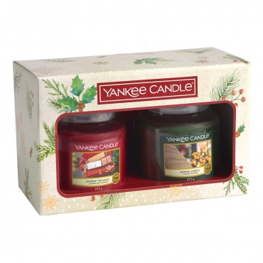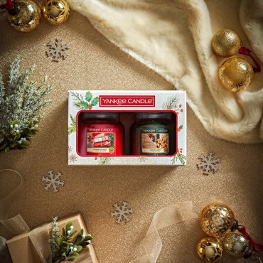 Wyjątkowy zestaw 2 średnich świec Yankee Candle w ozdobnym pudełku. Zestaw prezentowy stworzony specjalnie z okazji Świąt Bożego Narodzenia.