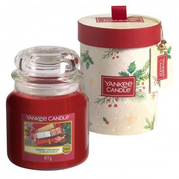Wyjątkowy zestaw średniej świecy Unwrap The Magic Yankee Candle w ozdobnym pudełku. Zestaw prezentowy stworzony specjalnie z okazji Świąt Bożego Narodzenia.