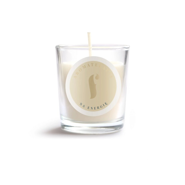 Mała sojowa świeca do aromaterapii Na Energię - rześka energia Flagolie. Ta mała świeca to mniejszy odpowiednik naszej świecy do aromaterapii Na Energię. Zastosowaliśmy w niej w 100% ekologiczny wosk sojowy oraz naturalne olejki eteryczne z trawy cytrynowej i eukaliptusa, które świetnie wpływają na koncentrację, pobudzenie i motywację do działania