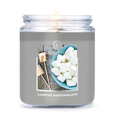 Mała świeca Campfire Marshmallow Goose Creek Candle. Odpocznijmy przy ognisku i tostujemy piankami. To tam przyjaciele stają się rodziną!