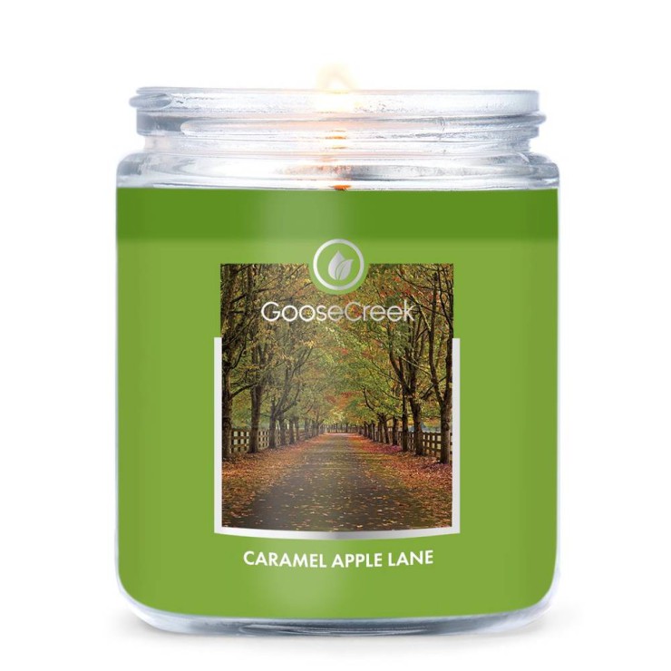 Mała świeca Caramel Apple Lane Goose Creek Candle. Delikatna jesienna bryza wieje przez sad... jabłka pokryte karmelem to uczta dnia!