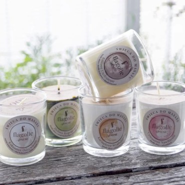 Świeca wykonana jest z naturalnego i ekologicznego wosku sojowego.