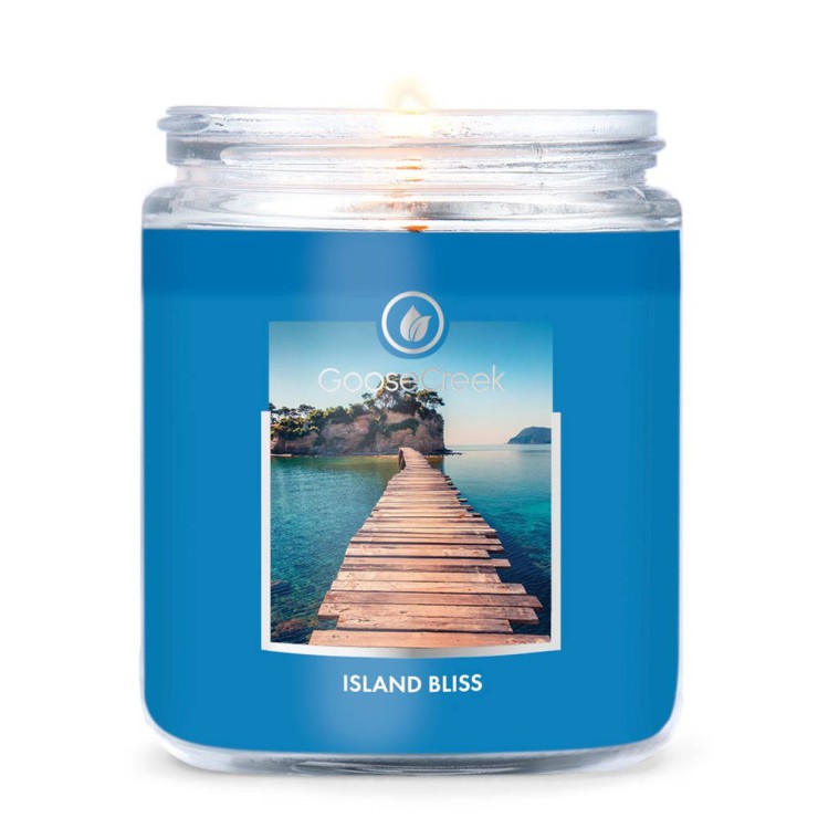 Mała świeca Island Bliss Goose Creek Candle. Zanurz się głęboko w krystalicznie czystej wodzie, zanurzając się w zrelaksowanym stanie całkowitego spokoju.