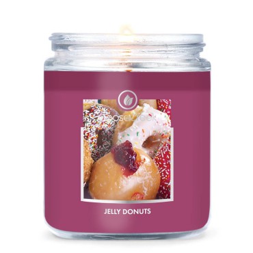 Mała świeca Jelly Donuts Goose Creek Candle. Ciesz się pysznym, domowym pączkiem z nadzieniem ze słodkich jagód.