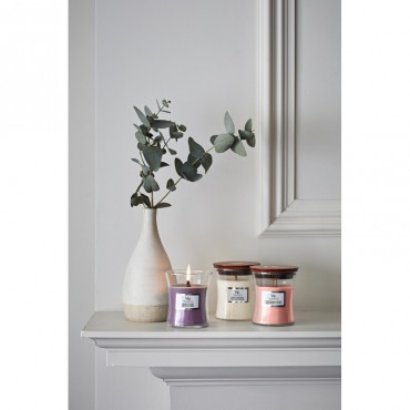 Die Kerzen sind in einem eleganten Glasbehälter untergebracht, während der Holzdeckel einen Hauch von Lässigkeit verleiht und auf den umweltfreundlichen Charakter des Produkts hinweist. Die Kerzen von Woodwick sind die perfekte Ergänzung für jede Inneneinrichtung.