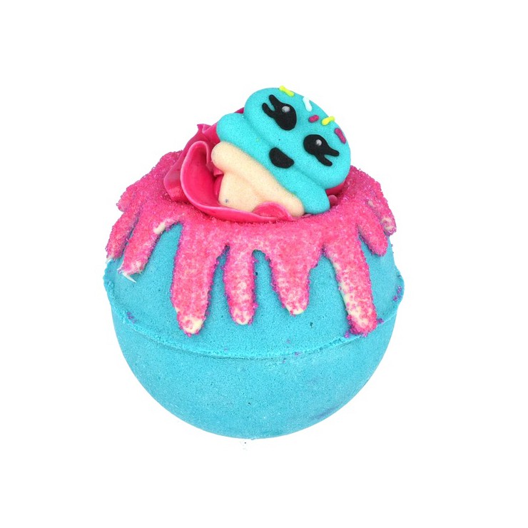 Musująca kula do kąpieli Blue Raspberry Ice Bomb Cosmetics. Ten śmieszny lód zawiera naturalne, kremowe masła i jest zmieszany z czystymi olejkami eterycznymi z cytryny i limonki. Obiecujemy, że pomoże Ci zachować chłód tego lata.