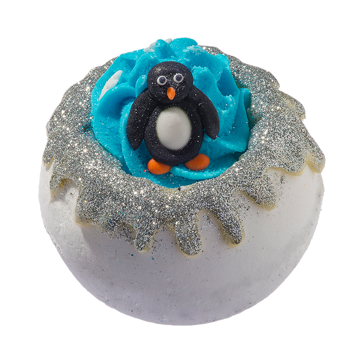 Musująca kula do kąpieli Przygarnij Pingwina Bomb Cosmetics. Prawdziwie zimowy, uroczy pingwinek, który chętnie podzieli się swoim zapachem lodowych kulek w towarzystwie prawdziwie rześkiej mięty. Zabierz go do wanny, gdy potrzebujesz odprężenia i wyciszenia, a Twoja skóra - naprawdę dobrego nawilżenia. Naturalne masełka dokonają na niej cudów, a miętowe olejki eteryczne rozjaśnią Twój umysł.