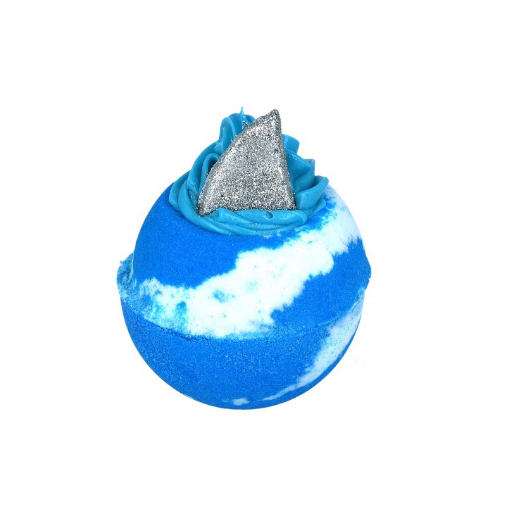 Musująca kula do kąpieli Shark Attack Bomb Cosmetics. Ze świeżymi oceanicznymi zapachami nasączonymi olejkami eterycznymi z mięty zielonej i mięty pieprzowej, jest to jeden przyjaciel z płetwami, z którym nie będziesz miał nic przeciwko dzieleniu się wodą!