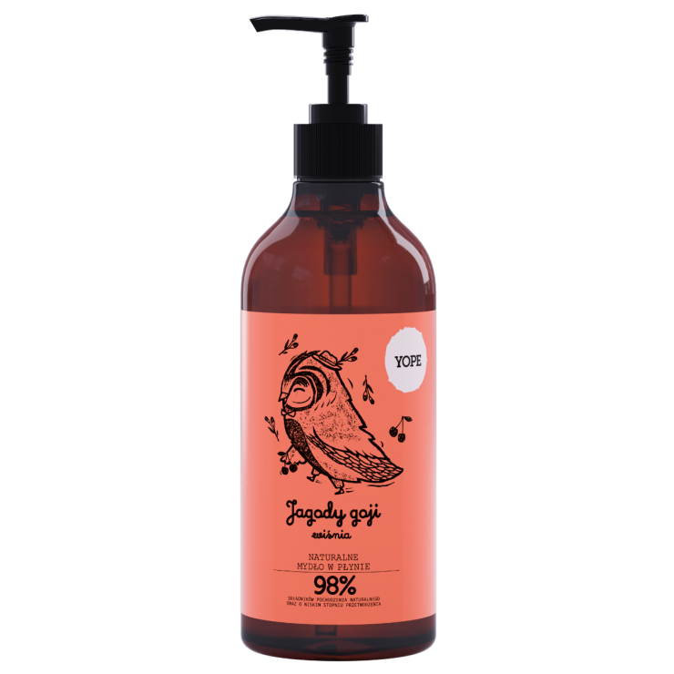 Mydło do rąk Jagody Goji i wiśnia Yope. To działa: neutralne pH iwyselekcjonowany skład sprawiają,że mydło doskonale dbao kondycję dłoni. Ekologiczneskładniki myjące łagodnieoczyszczają.