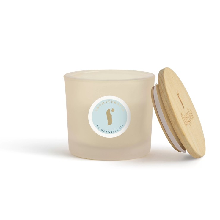 Naturalna świeca do aromaterapii Na Odświeżenie - cynamonowe odświeżenie Flagolie. Świeca do aromaterapii Na Odświeżenie z dodatkiem naturalnych olejków eterycznych: cynamonowy, pomarańczowy, sosnowy i z mięty pieprzowej. Bardzo świeży i intensywny zapach. Wylana w matowym słoiku, zapakowana w ozdobny karton z tektury ekologicznej. Odświeża powietrze, neutralizuje nieprzyjemne zapachy, działa przeciwzapalnie, oczyszcza zatoki, ułatwia oddychanie, relaksuje i odświeża