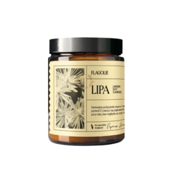 Naturalna świeca sojowa Kwiat Lipy - Four Seasons Flagolie. Świeca do wnętrz o zapachu kwiatu lipy, wykonana z naturalnego wosku sojowego. Przywodzi na myśl pierwsze ciepłe letnie dni. Wylana w szklanym, brązowym słoik.