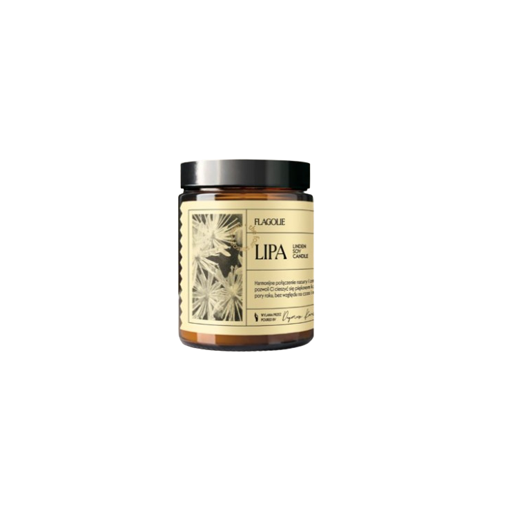 Świeca do wnętrz o zapachu kwiatu lipy, wykonana z naturalnego wosku sojowego. Przywodzi na myśl pierwsze ciepłe letnie dni. Wylana w szklanym, brązowym słoik.