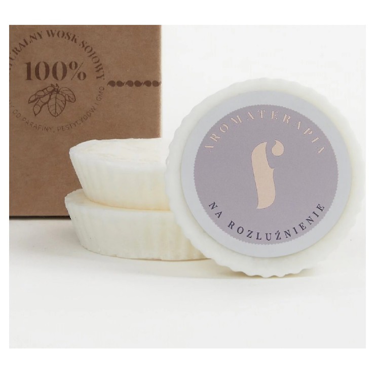 Naturalny wosk zapachowy Na Rozluźnienie wykonany jest z naturalnego wosku sojowego, z dodatkiem lawendowego olejku eterycznego. W aromaterapii, olejek ten jest ceniony za swoje właściwości relaksacyjne i odprężające.